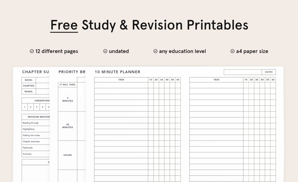 Free Study & Revision Printables for Students